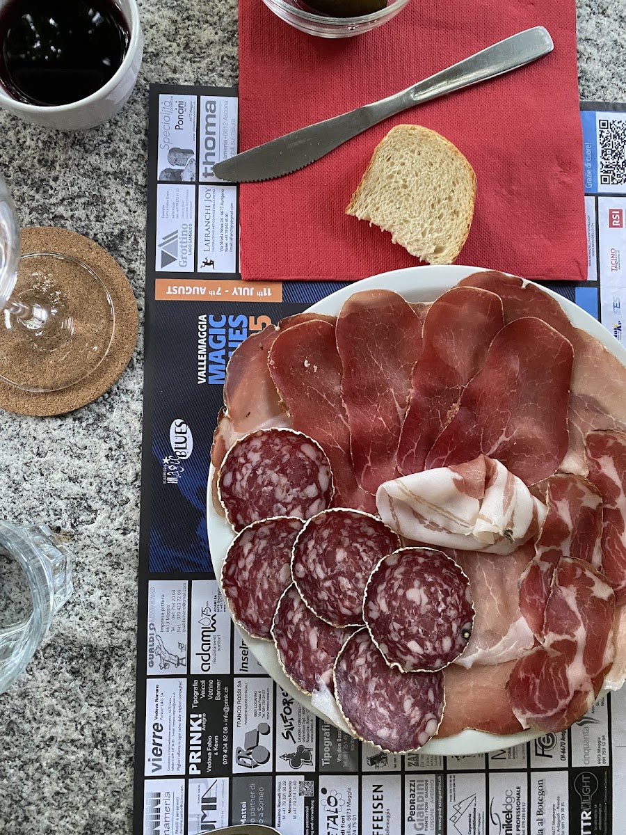 Siamo stati in questo Grotto con amici, a Lodrino, in una zona dedicata ai Grotti che non conoscevamo della Riviera ticinese. Devo dire un bel posto, molto tipico con ambiente curato e pulito. Tutto quello che abbiamo ordinato era molto buono, ben cotto e gustoso. Anche la proprietaria era molto attenta a noi commensali. Servizio veloce e cameriere gentili ed attente. Grande parcheggio sterrato. Molto curioso e simpatica la scritta che ho trovato nel locale bagno a fine serata.